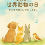 2025年10月4日 / 最終更新日 : 2025年10月4日 nijiirogumo その他 10月4日は世界動物の日 こんにちは。 ペットシッターにじいろぐもの久保です✨ 本日、10月4日は「世界動物の日」。 動物たちも人も、神の前では兄弟姉妹であり、すべての命は平等である—— そんな聖フランチェスコの教えにちなんで、この […]