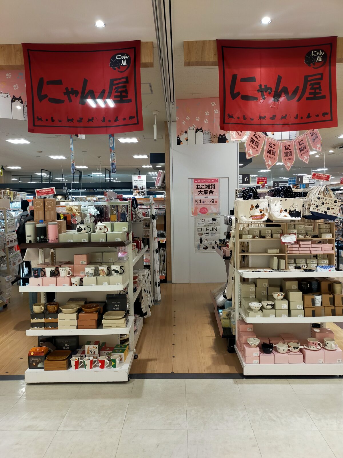 アピタの店員さんに「猫雑貨特設会場はどこにあるのですか?」と聞いたら、「メガネ屋さんの前です」とのこと。