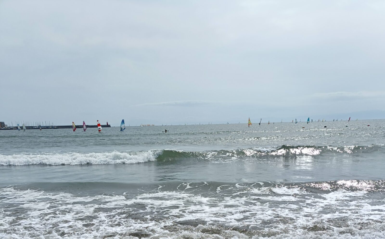 すでにウィンドサーファーがいたり、バーベキューをしてる人達もいて、ちょっと賑やかになりつつある浜辺でした。