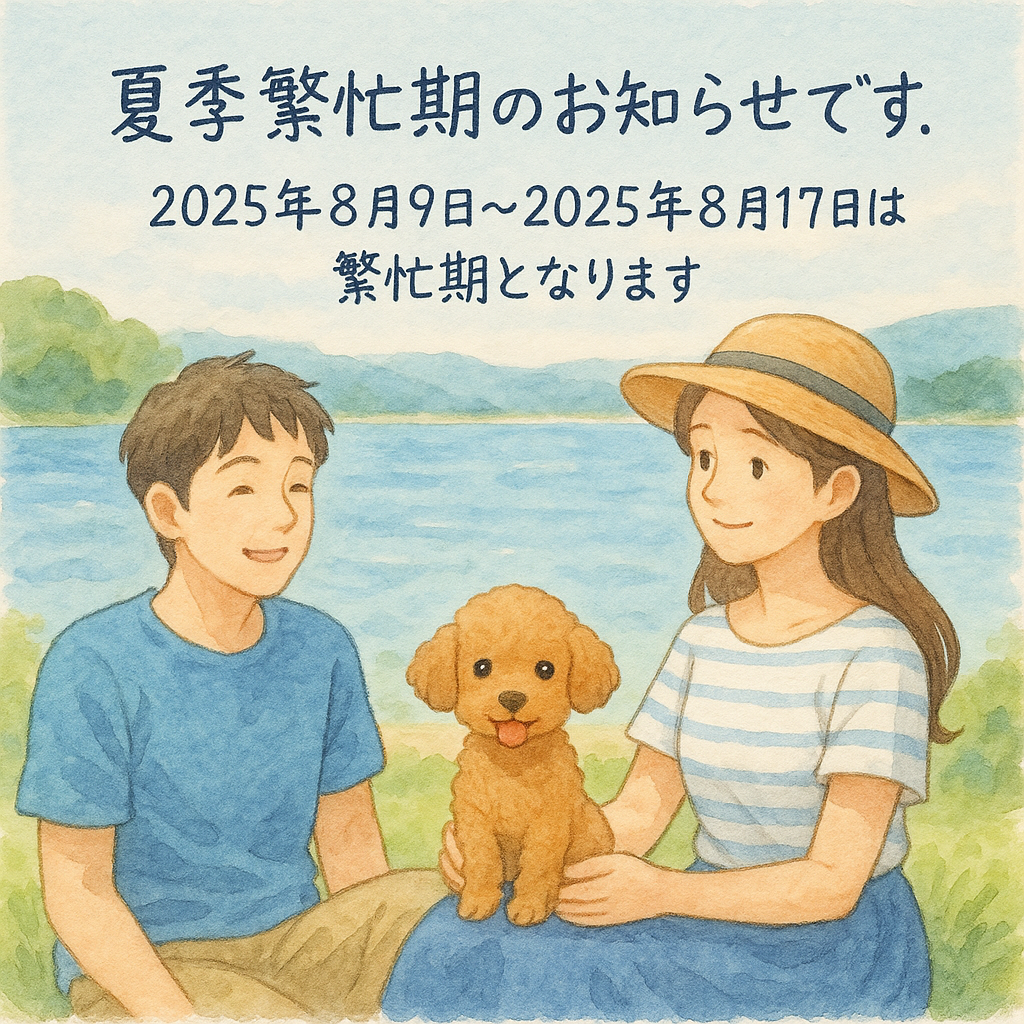2025年8月9日~2025年8月17日は繁忙期となります。大変混み合いますのでお早めにお問い合わせ下さい。