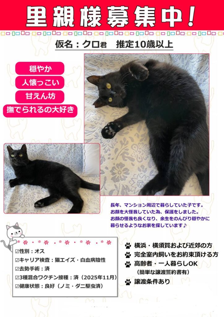 #黒猫 #保護猫 #元野良猫 #ずっとのおうち #里親募集 #猫のいる生活 #シニア猫 #ペットシッターにじいろぐも #金沢区 #逗子市 #葉山町