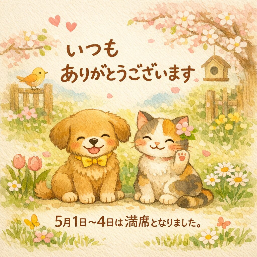 ゴールデンウィークの5/1(金)〜5/4(月)は満席となりました。