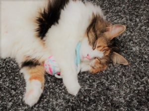 そしていっぱい遊ぶと眠くなるのかおもちゃを持ったまま(-_-)zzz