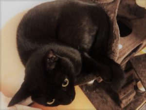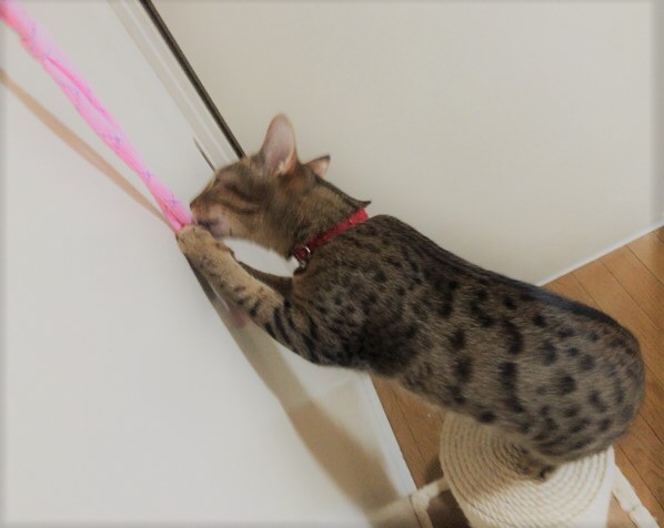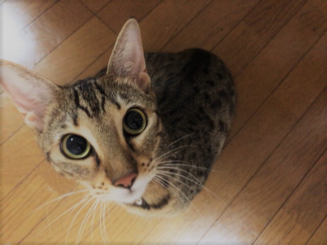 キャットタワーに上って、この表情!