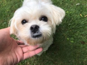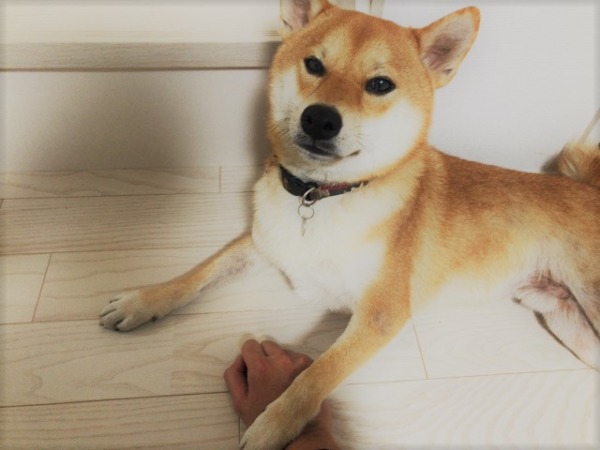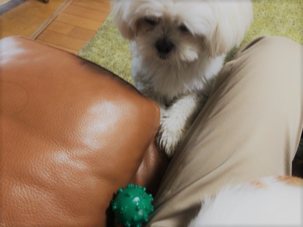 おうちでは私の手の上にお手(笑)