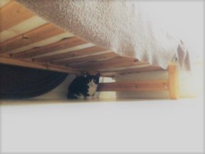 今回のお世話でも最初はベッドの下に隠れていましたが
