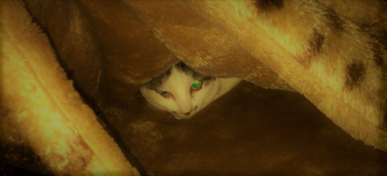 フクちゃんは、、、いつも通り毛布の中にいました(^^;