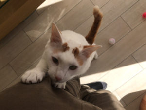 足にうまくスリスリしながらくっついて歩くのでまるで磁石のようです(笑)
