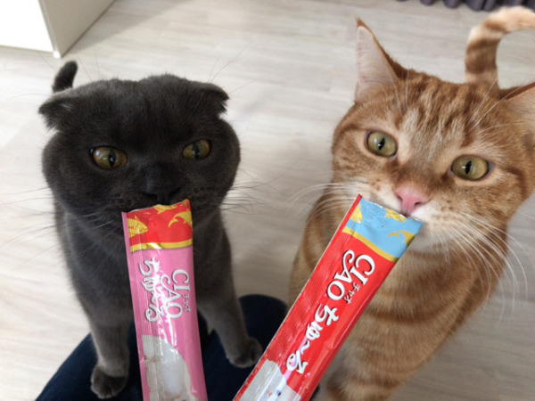 ダブルでご挨拶した後はダブルでちゅーる(*´ω`*)