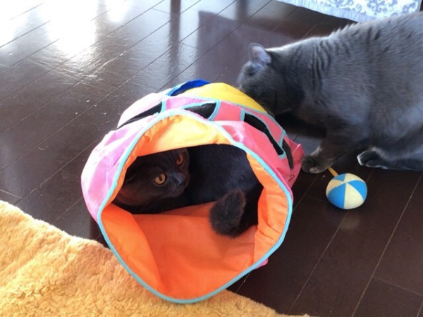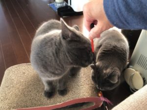 そしてごはんをあげ終わり、遊ぼうとすると微妙な距離感、、、
