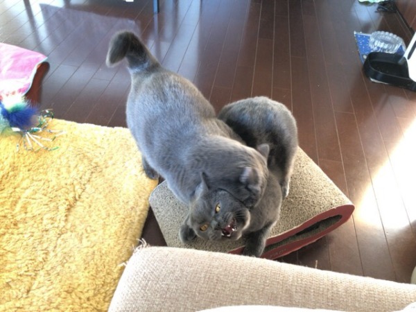 2人で勢いよくじゃれてものすごい顔になっていました(笑)
