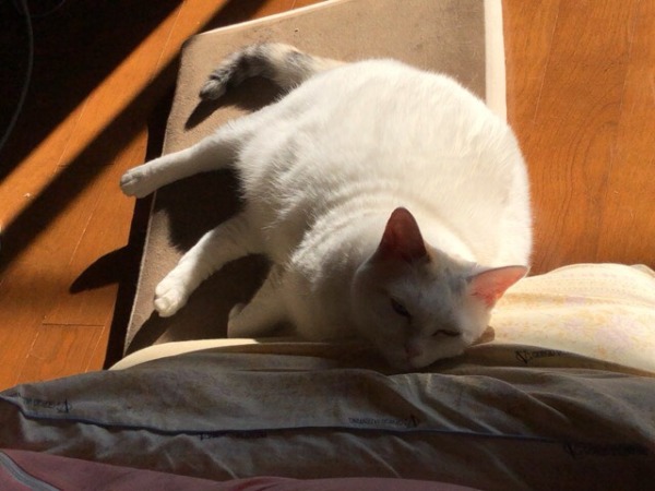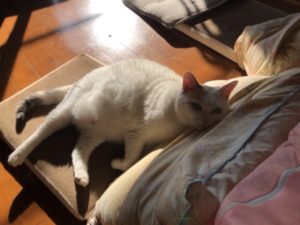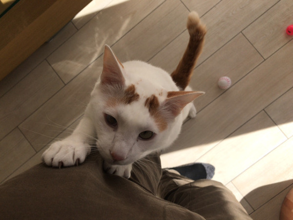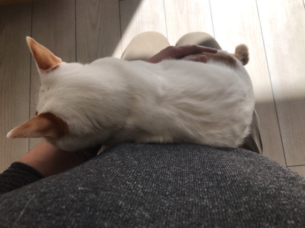 膝の上でふみふみしたり、ごろんとしたり