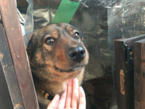 ハチちゃんは30秒ぐらい犬小屋からこちらを見ていて