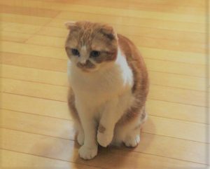 コゲマルちゃんが片足をあげて少し不安げな顔している(^^;