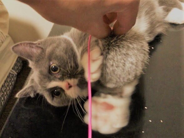 先日、ご紹介した川口市にお住いのマンチカンの万次郎君(マンちゃん)のお世話の様子です。