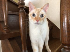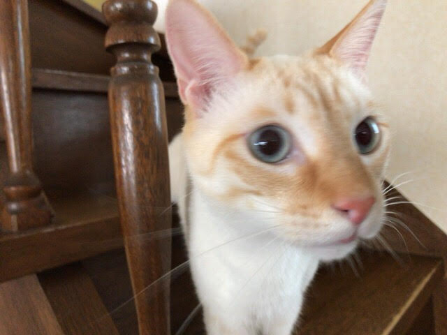ココくんは階段で警戒と興味と戦い、興味が勝ち、階段で挨拶してくれました(^^)/