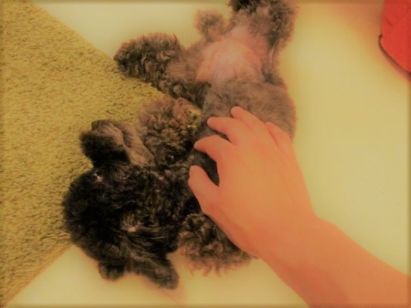 トイプードルの小梅ちゃんはとっても人懐っこく前回のお世話でもすぐにおなかを見せて