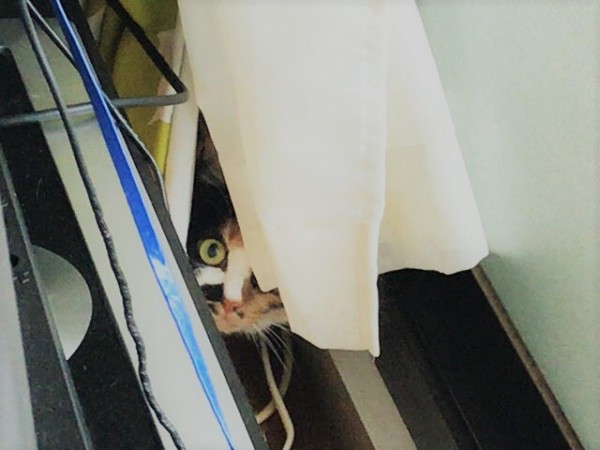 あーぷーちゃんはテレビの裏にいました、、、ごめんね、なにもしないから安心して(;’∀’)