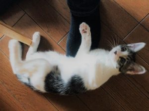 そして激しすぎてお菓子を落としたり、どこで遊んでるのか分かっておらず、私の足元でごろんとしたり、やんちゃ坊主です(;・∀・)