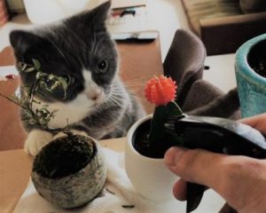 今回は新しくお花の水やりが加わり、万ちゃんと一緒にお水をあげました(^^)
