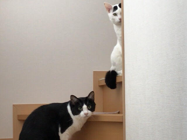 移動したとしても階段からこちらをじっと見つめてきます(^^;