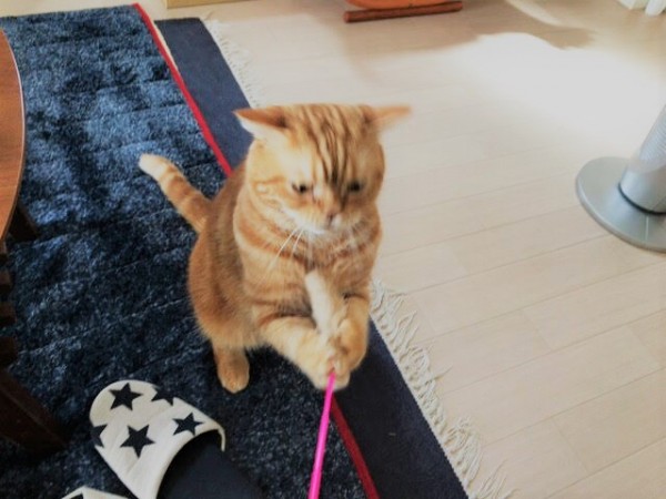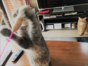 まずは無難に猫じゃらしで遊んで二人とも楽しそうに遊んでくれました(^-^)