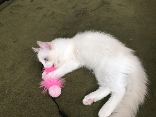 モコ君は少し落ち着いた感じもありましたが時々おもちゃで遊びます(^^)