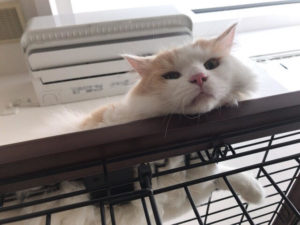 そんなお兄ちゃんモコ君にケージ上から見下ろされて猫様~となってしまいました(笑)