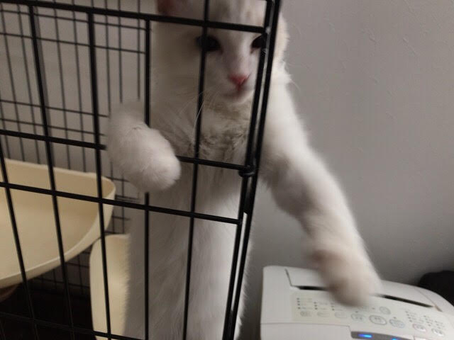 そして最後、ケージに戻すとまだ遊び足らなかったのか必死で出たいと訴えるムク君
