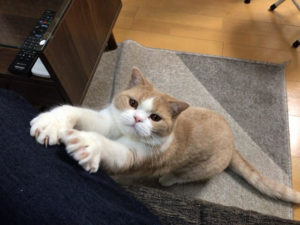 2日目、ゴロウ君は2日連続で私のズボンに爪出し入れ!