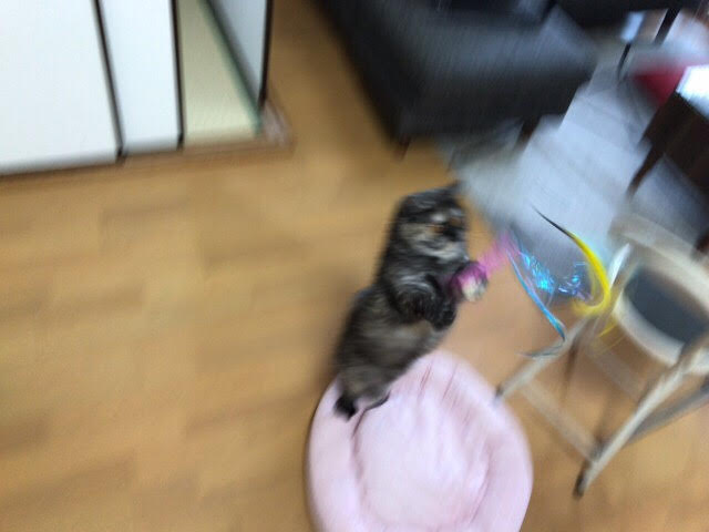あまりにも勢いがあったせいか、おもちゃの方がまだピントが合ってます(笑)
