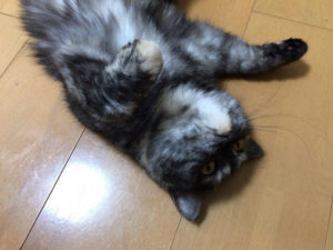 ゴロウ君は伸びをしながら爪を出し入れ、、、私のズボンで(笑)