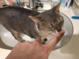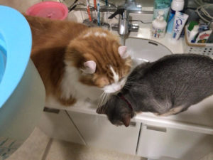 洗面所を占領するチーズくんとピナコちゃん(^^;