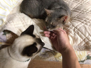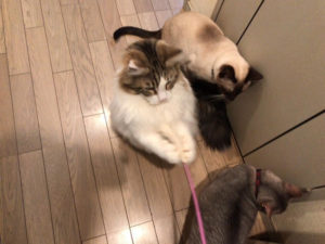 ピナコちゃんが甘えそれをうらやましそうに見るサトツ君(そうであってほしいだけです)