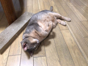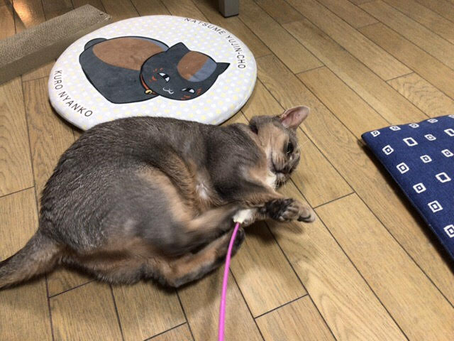 チーズくんは寝っ転がりながら遊び