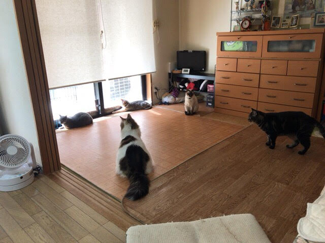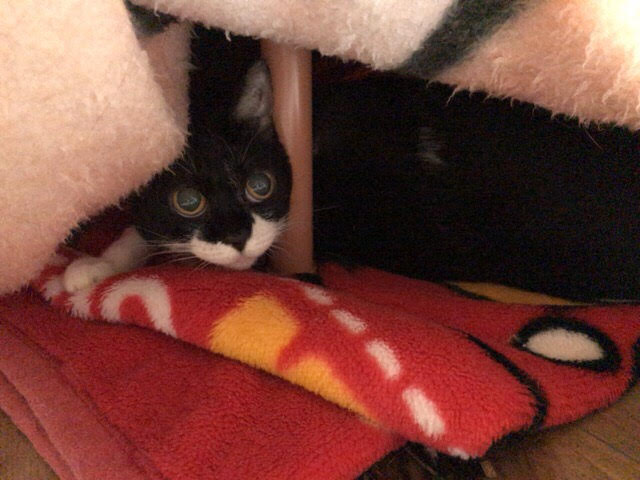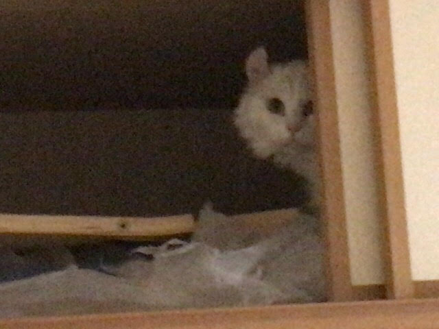 アロ君はホームポジションの天袋、クロコちゃんは1日目はいなかったこたつの中に