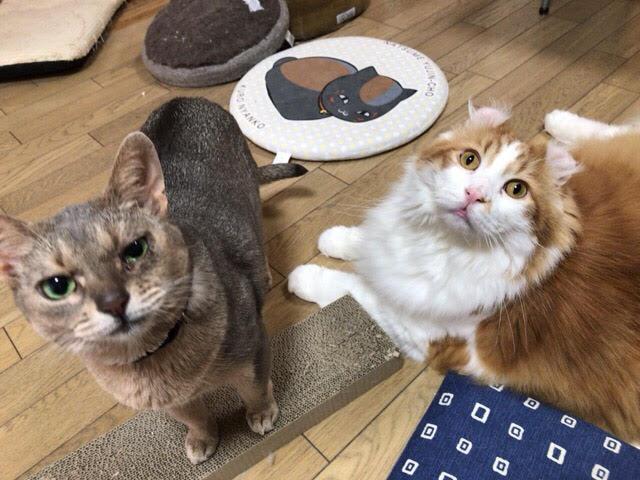 ピナコちゃんが甘えそれをうらやましそうに見るサトツ君(そうであってほしいだけです)