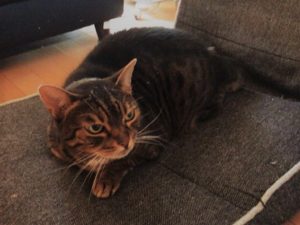 帰ってきてから、片付けや洗濯などで動き回っているあとをずっと着いてきて甘えています。