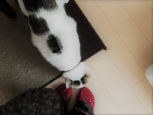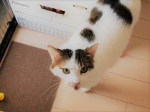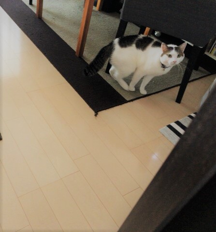 「お腹が空いた!」とご飯やチュールがあるところでスタンバイしています。