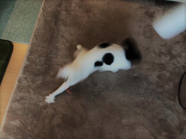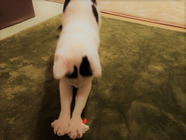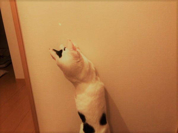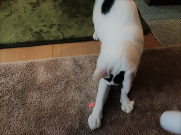 マロ君はおもちゃでどんなに頑張っても捕まえられない赤い点をあきらめることなく