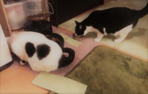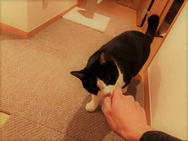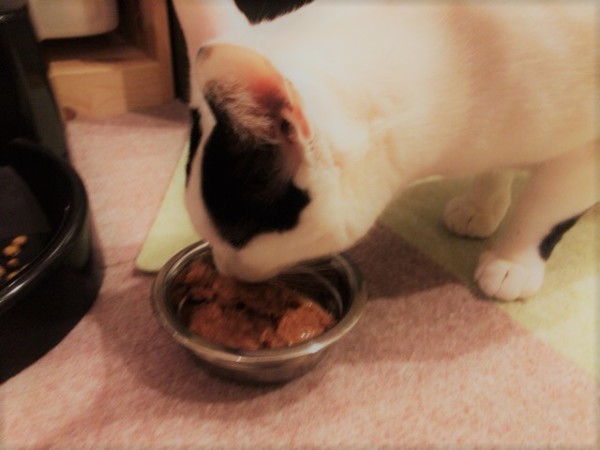 いつも通りご飯を用意しているとマロ君が登場しました。