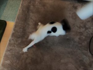 遊んでいるマロ君の姿を見てじっとしています。