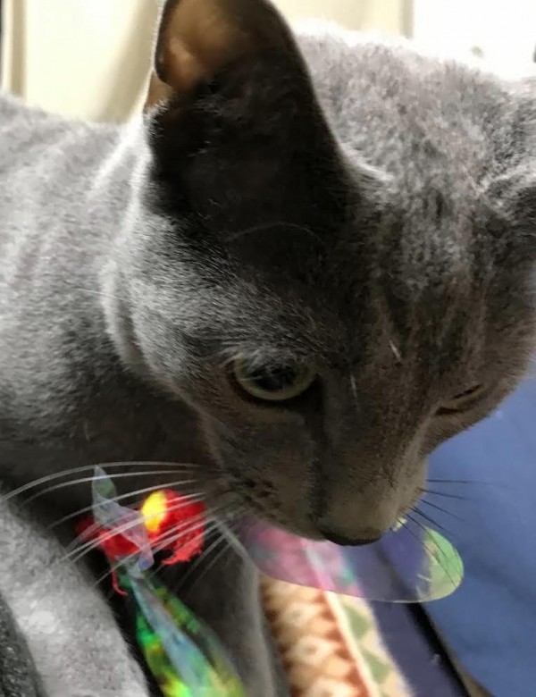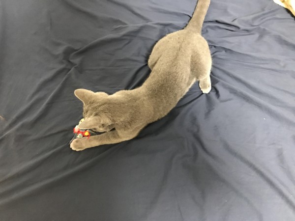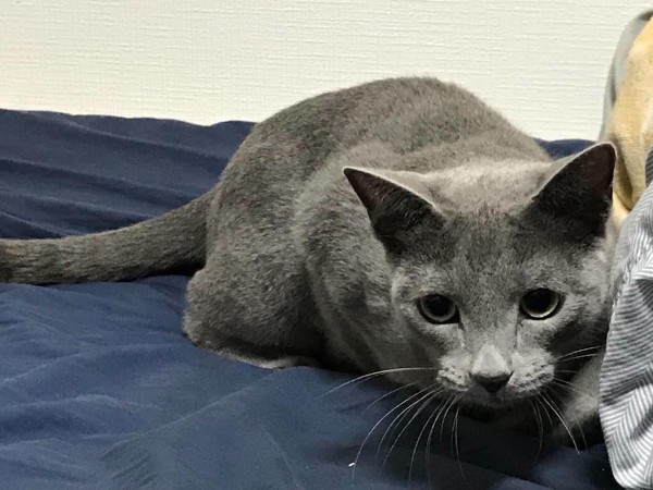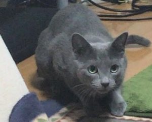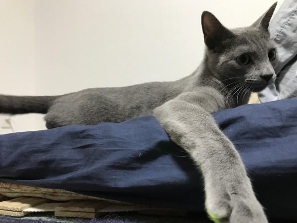 この前ブログで紹介したロシアンブルーのいそろく君(いーちゃん)の