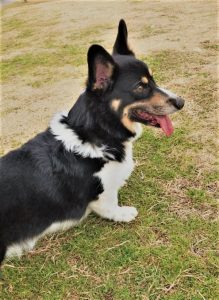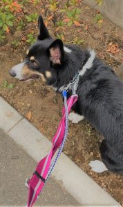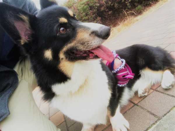ちょっとバテた大和君、散歩道で座り込みました、座り方がかわいいですね(*’ω’*)