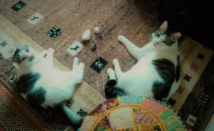 2人(猫)とも同じようなポーズ(^^)背中の模様が兄弟だと感じさせますね!