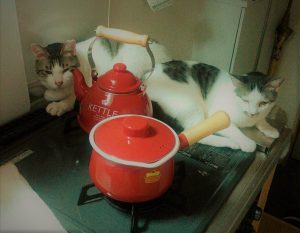 2匹がまだ小さく野良猫の時にご飯をあげていたら