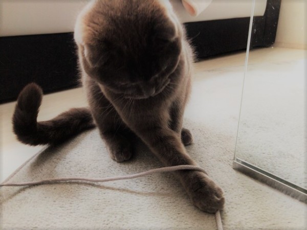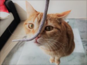 まろちゃんは静かーに紐で遊び、ふうた君は勢いよく遊びます(*´ω`*)