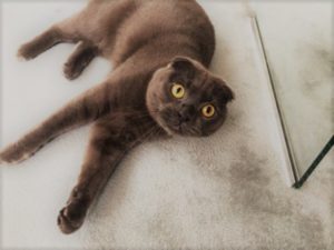 まろちゃんの無駄に辛い姿勢でふうた君を見つめる写真です(笑)