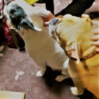 こんにちは! 先日、母親のママ友の集まりがあり そこにフレンチブルドックが3匹いるということで会いに行ってきました! 部屋に入るとまずはみんな「かまえ、かまえ、かまえ」と 勢いよくこちらに来ました。 3匹の特徴は 白色の …