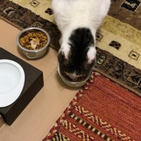 こんにちは! それでは、ウメキチ君、フクちゃんのお世話の続きです。 2日目もウメキチ君が警戒心と好奇心を持ちながら出迎えてくれました。 ただごはんが欲しいのかにゃあと鳴いてきました。 ごはんを用意していると、、、おっ!前 …